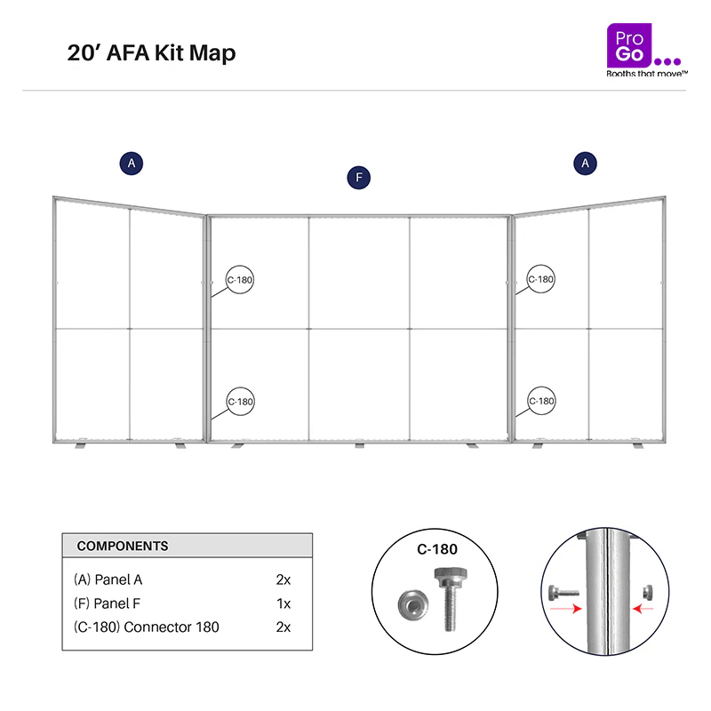 The GoElite Illuminate Series kits captivate audiences with their illuminated displays, blending various shapes and styles to craft compelling exhibits. Each kit includes all necessary hardware, graphics, connectors, and extension cables to connect to a single power source. Every panel is carefully packed in a custom-foamed shipping case. With the 20-AFA kit, a pair of angled A panels accentuates the design to create an impressive 20ft showcase, which can also be transformed into two distinct 10ft displays. Enhance the branding experience with double-sided graphics or incorporate accessories such as TV mounts, counters, and shelving. For interchangeable options, panels can be substituted with corresponding choices from the ProWave and GoElite Display Series systems; contact our team for more information.